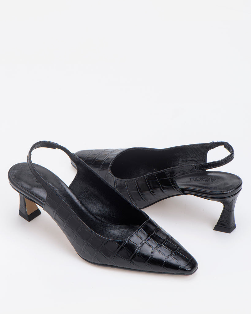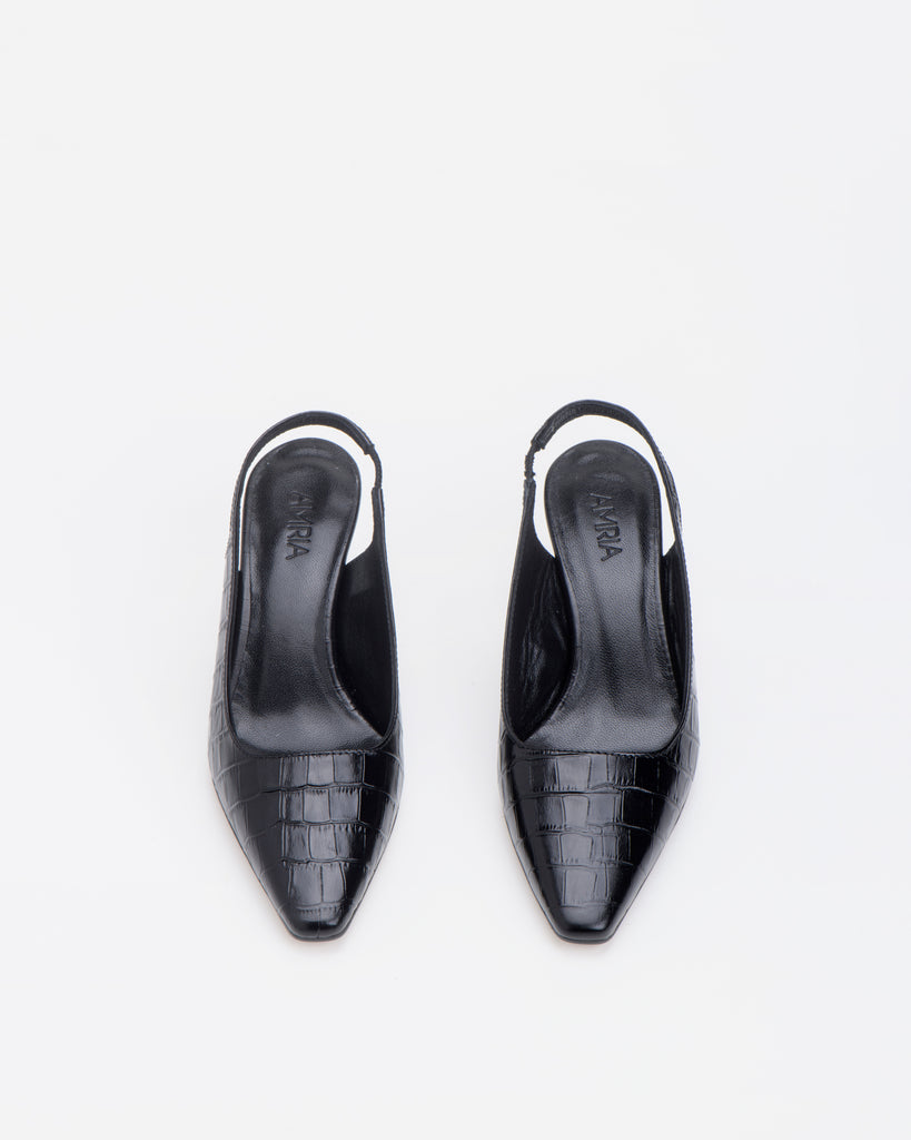 Ivy kitten heel pump crafted from smooth calf Italian leather. Classic pointed toe silhouette with slingback straps, set on comfortable kitten heels. They work just as well for the office as they do for date night.