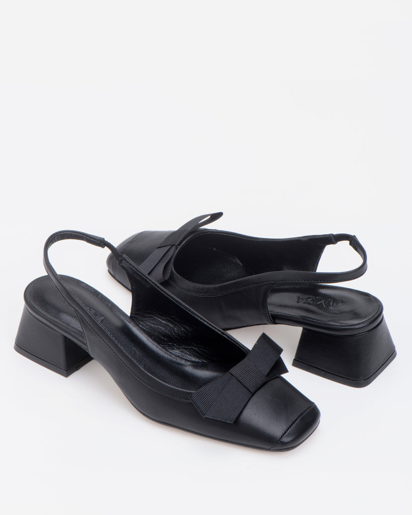 Soul pumps are a truly timeless investment. Slingback 4 cm heels, with bowtie. Crafted from soft Italian leather set on comfortable block heels with slim strap at the back.