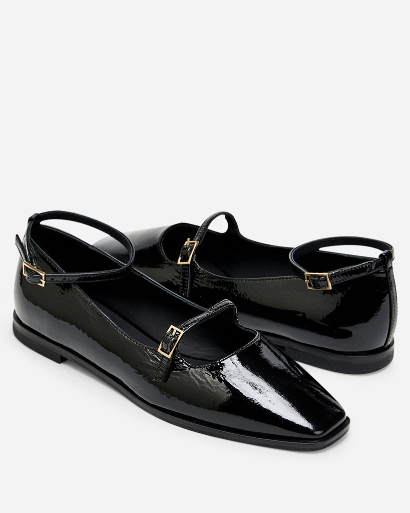 Baby flats are modeled on traditional Mary Jane styles. Comfortable and chic, this pair has square toes silhouette and slim straps.